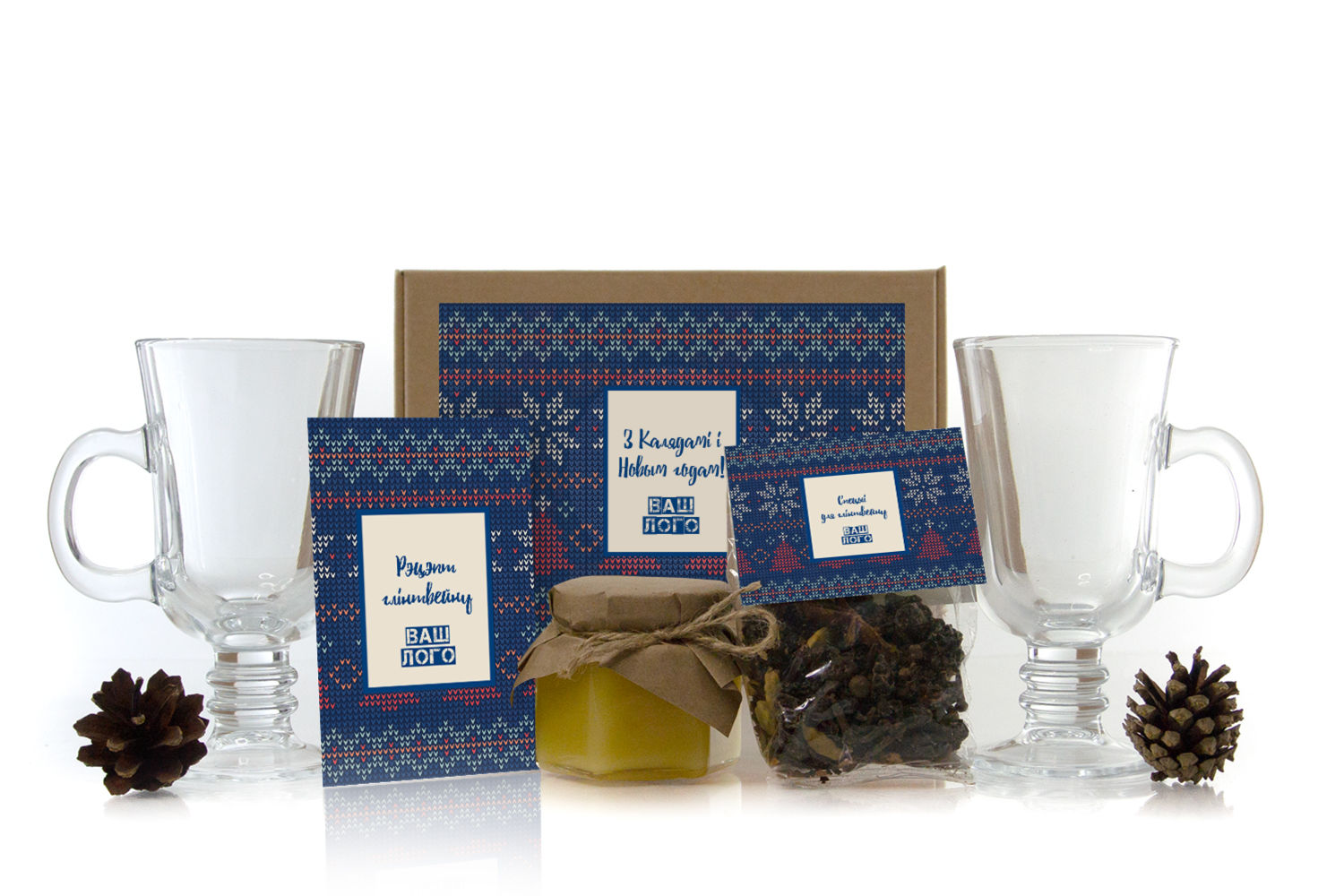 Наборы с глинтвейном - актуальны для новогодних корпоративных подарков. А готовые варианты дизайна оформления позволят подобрать вариант под корпоративный стиль вашей компании. Ваш логотип будет размещен на наклейке к коробке, бирке к специям для глинтвейна, на наклейке меда, на рецепте приготовления