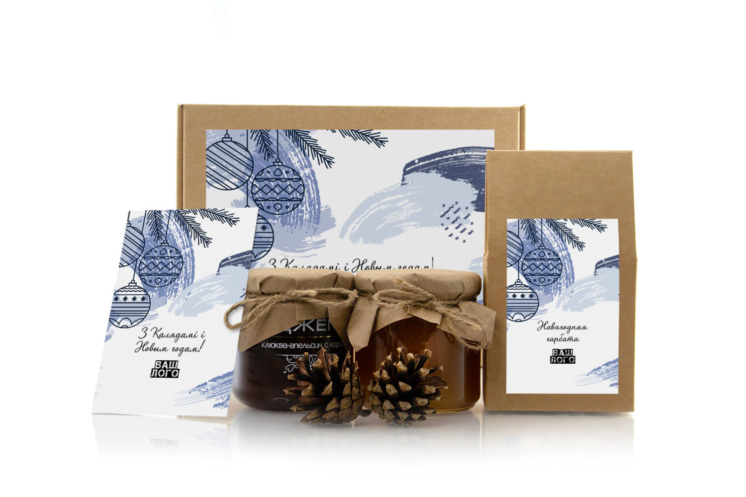 Корпоративный подарок на Новый год с чаем, медом и джемом