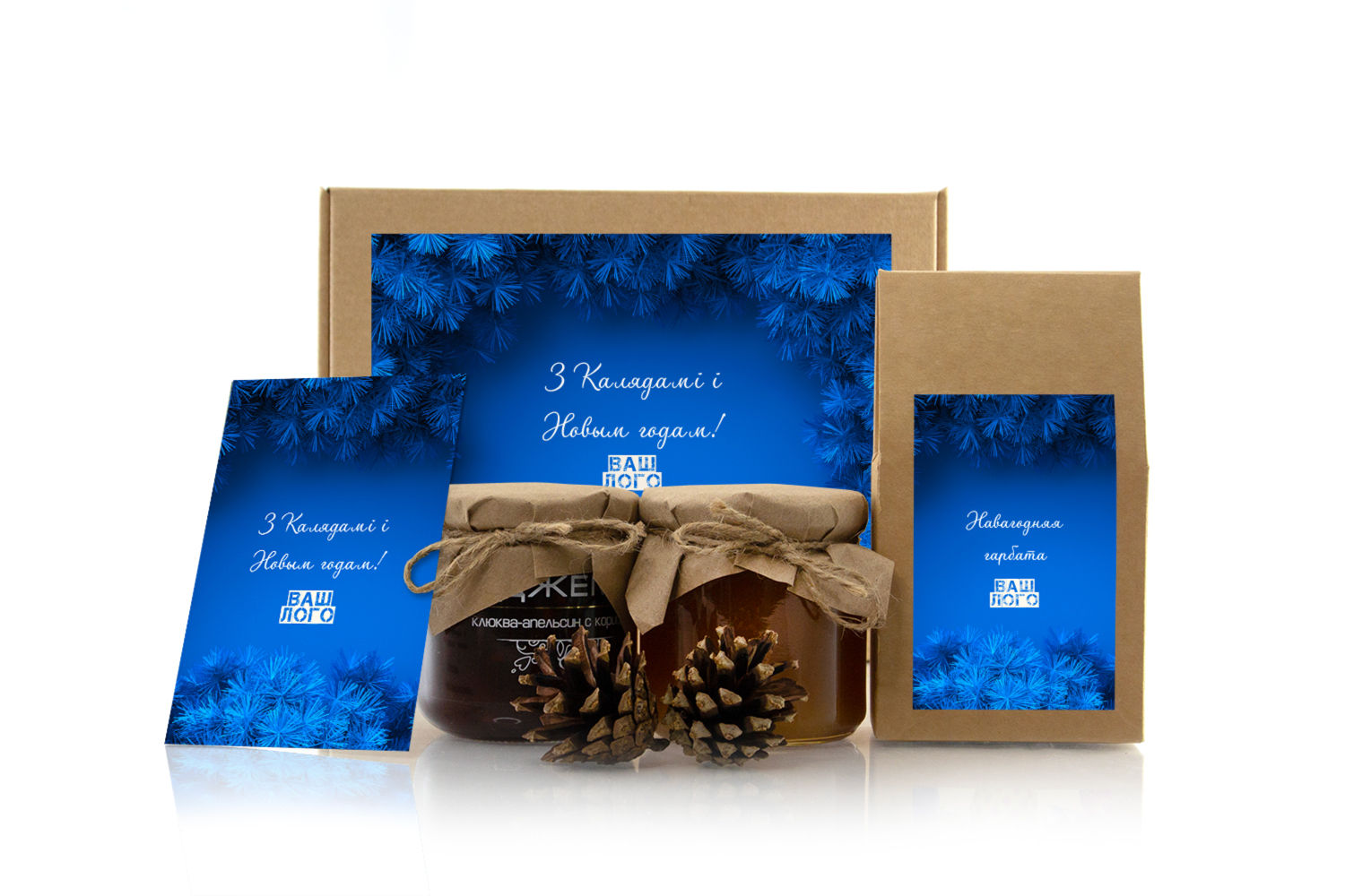 Корпоративный подарок на Новый год с чаем, медом и джемом