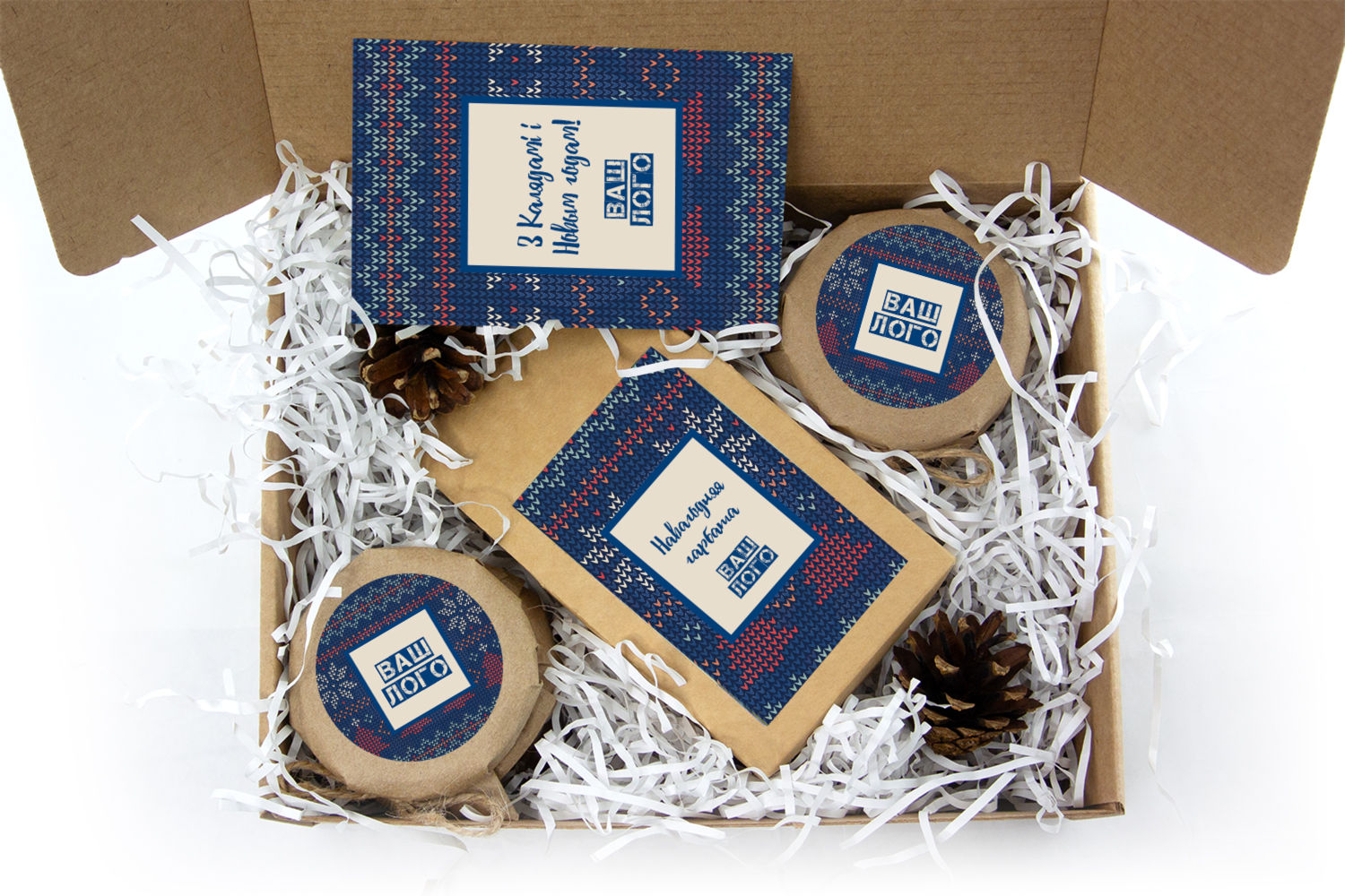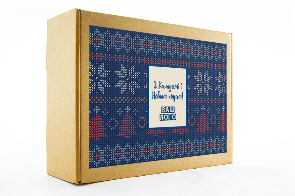 в крафт-коробке с наклейкой. Наклейка 6*9,5см с вашим логотипом