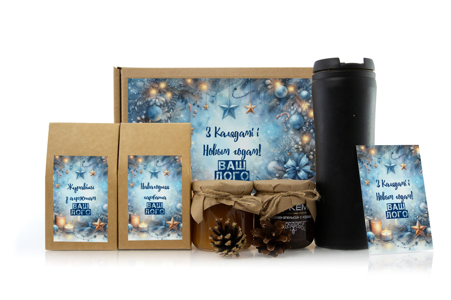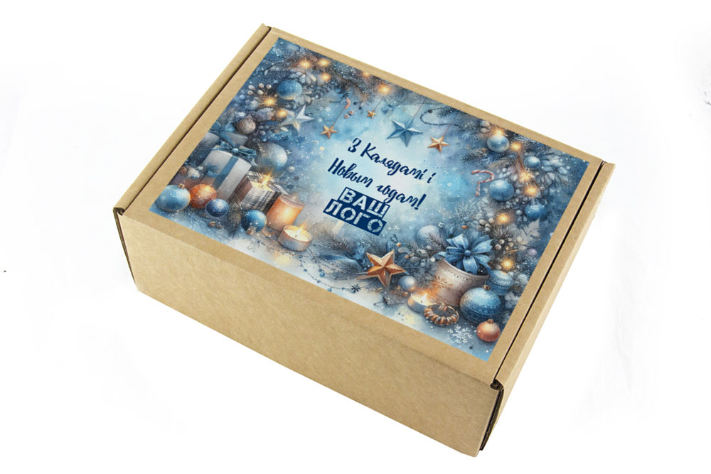 в крафт-коробке с наклейкой. Наклейка 6*9,5см с вашим логотипом