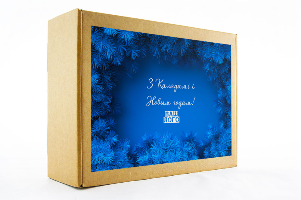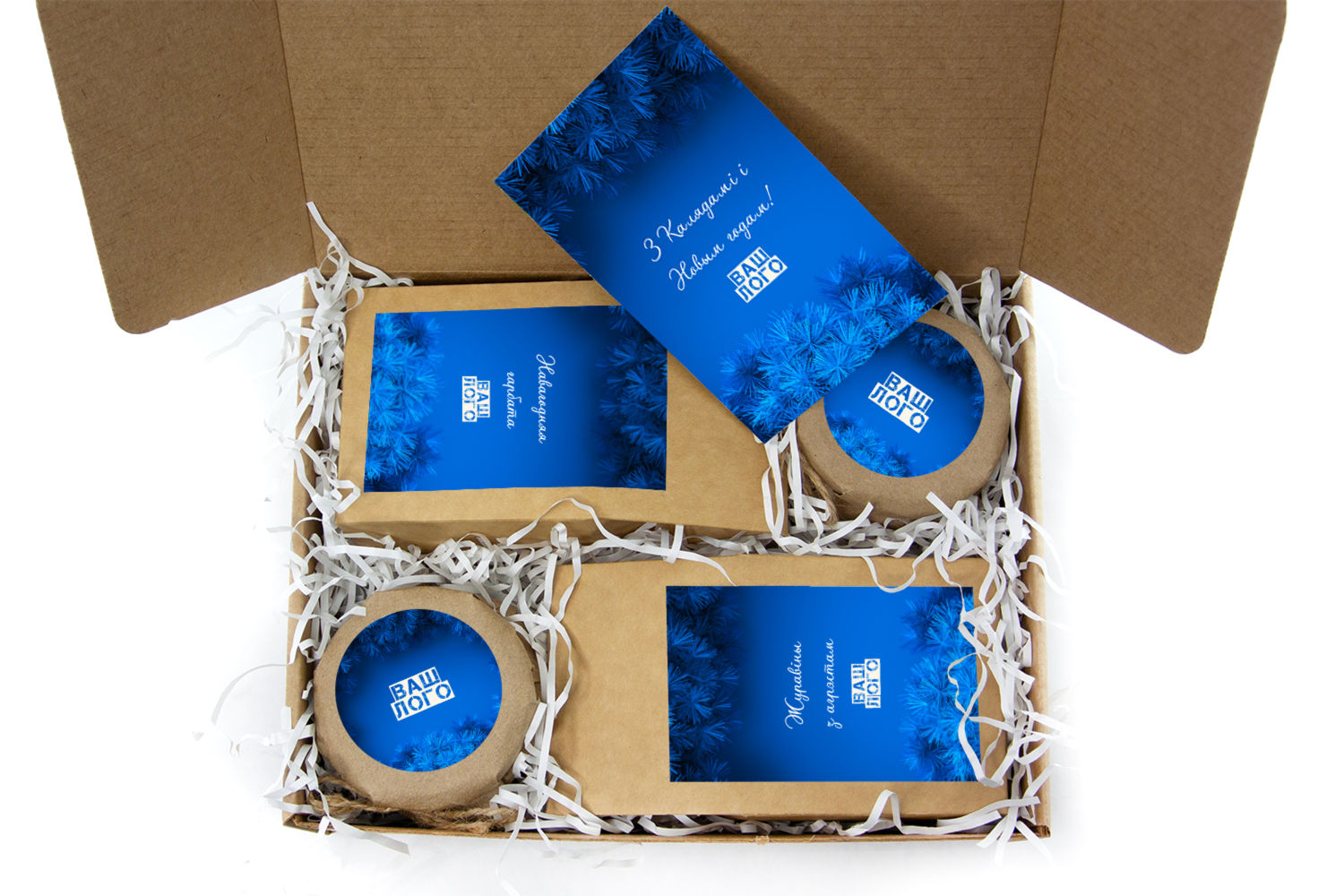 в крафт-коробке с наклейкой. Наклейка 6*9,5см с вашим логотипом