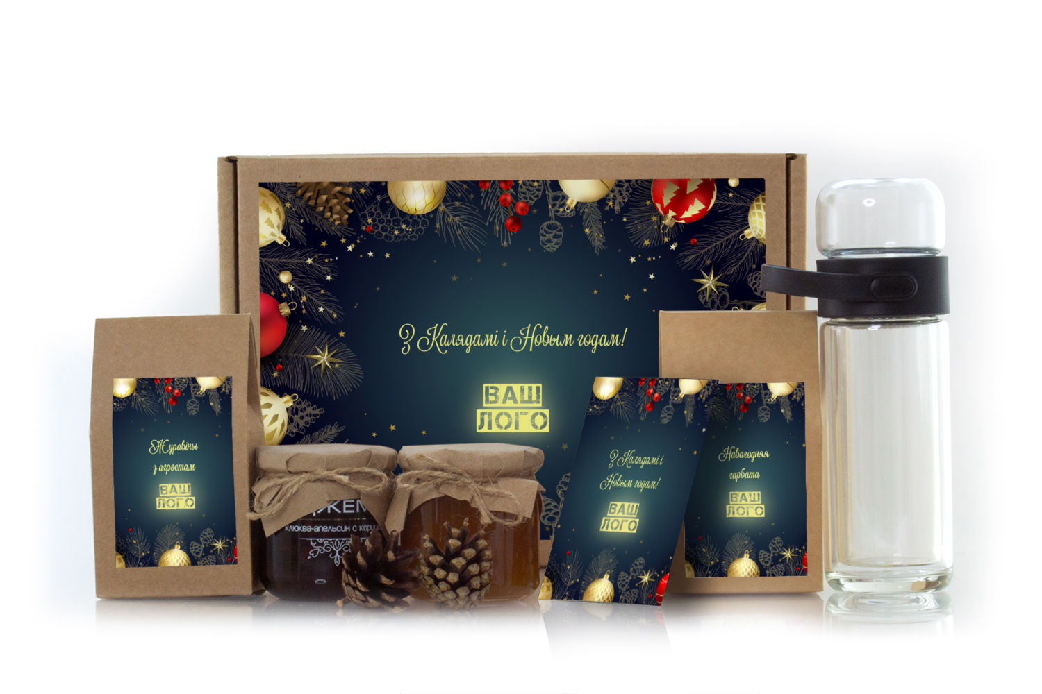 Весь набор представлен в стильной подарочной упаковке, украшенной большой наклейкой с вашим логотипом. Такая презентация не просто сохраняет содержимое, но и создает интригующий момент ожидания при распаковке подарка.