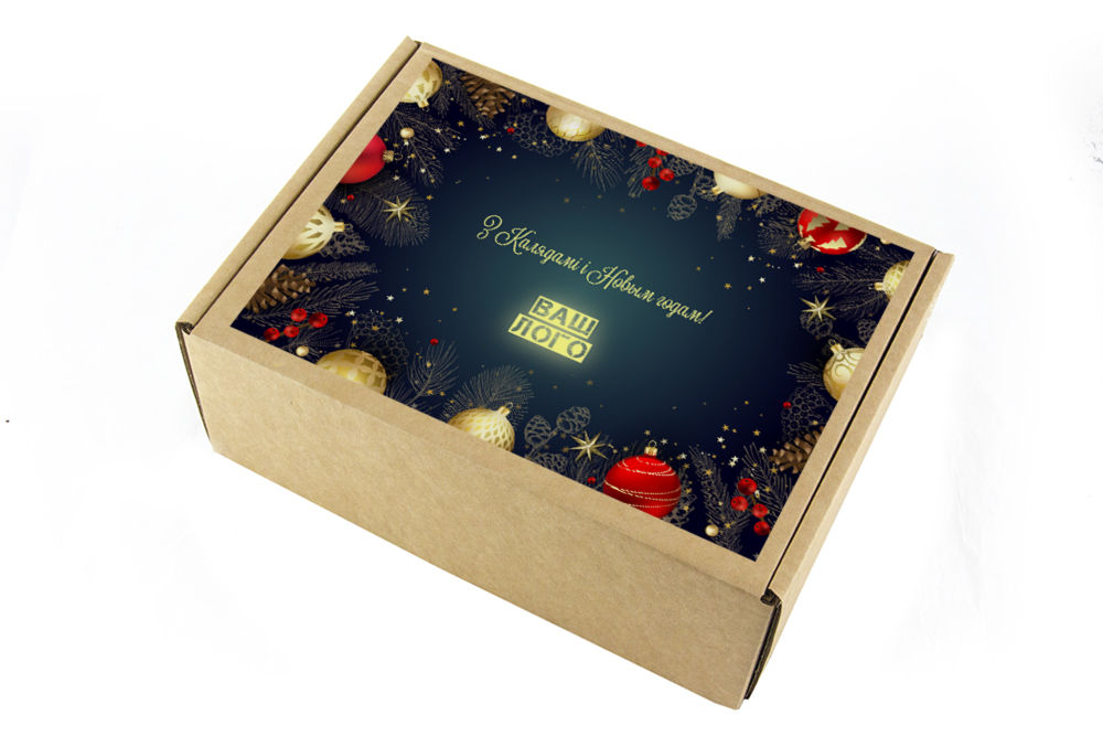 в крафт-коробке с наклейкой. Наклейка 6*9,5см с вашим логотипом