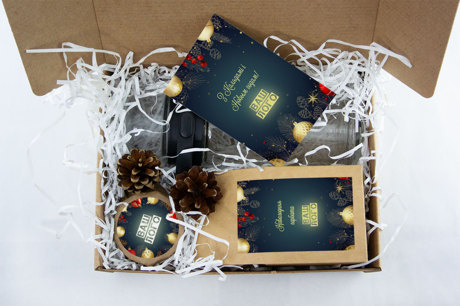 Все эти замечательные предметы будут уложены в элегантную подарочную коробку, украшенную большой наклейкой с вашим логотипом. Коробка не только защищает содержимое, но и создает эффект предвкушения, превращая момент открытия в настоящее событие.