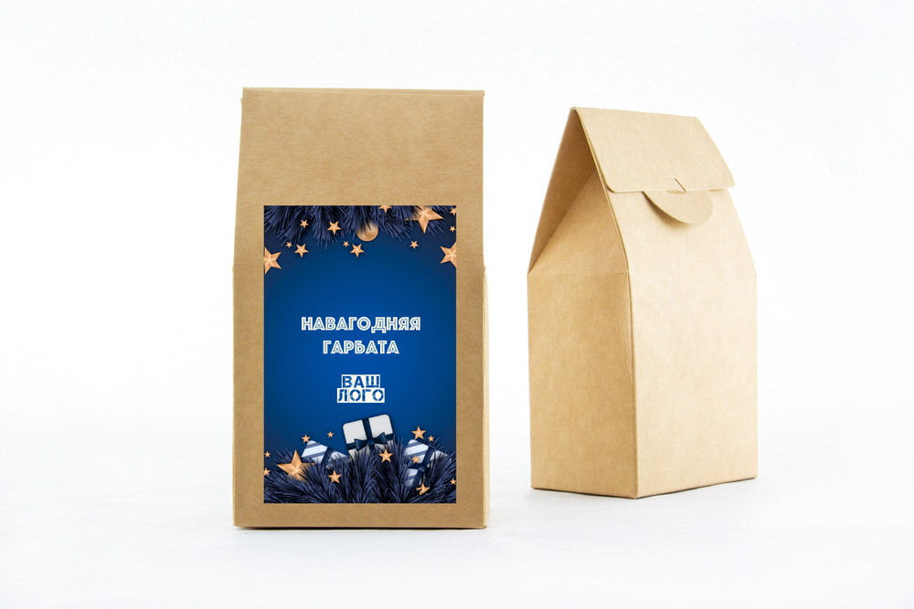 в крафт-коробке с наклейкой. Наклейка 6*9,5см с вашим логотипом