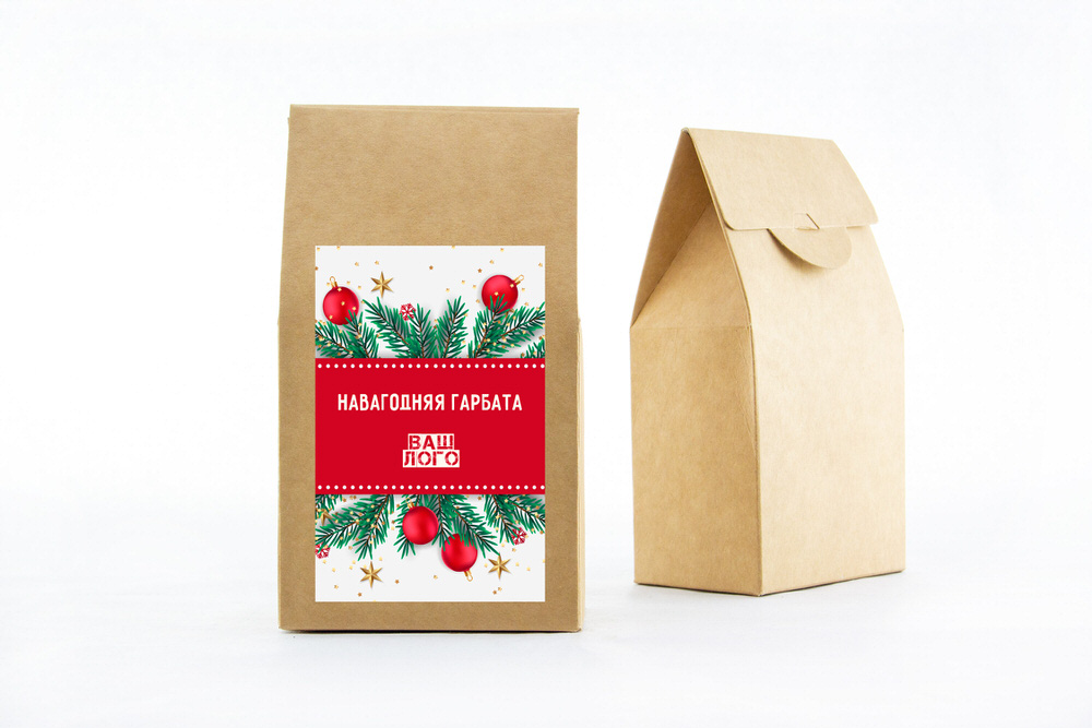 в крафт-коробке с наклейкой. Наклейка 6*9,5см с вашим логотипом
