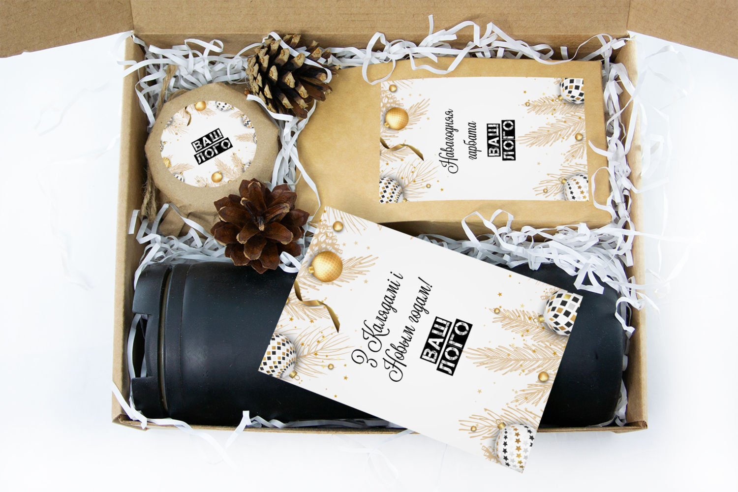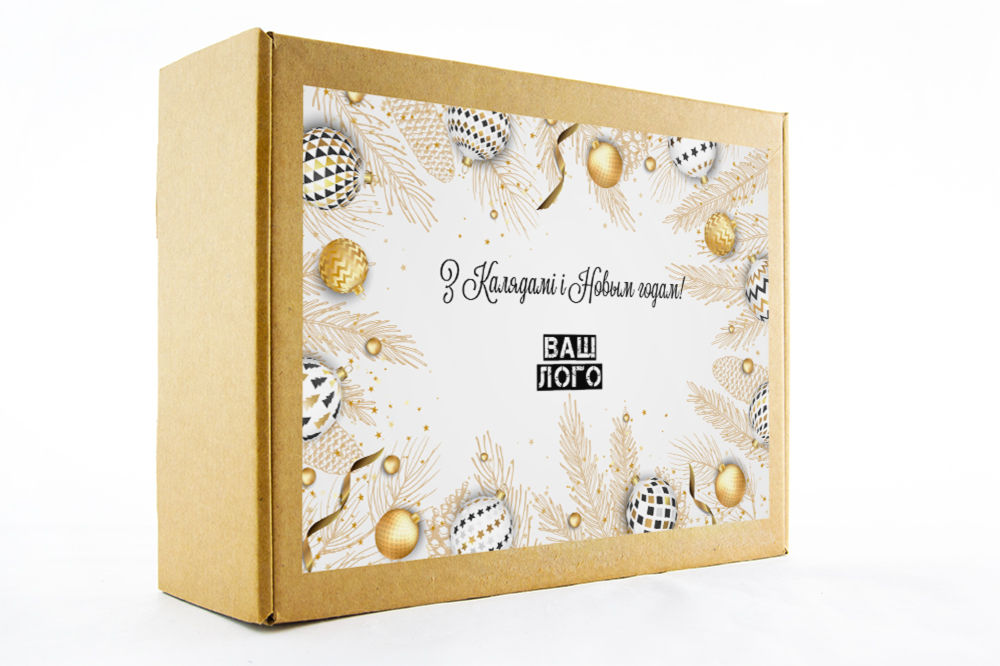 в крафт-коробке с наклейкой. Наклейка 6*9,5см с вашим логотипом