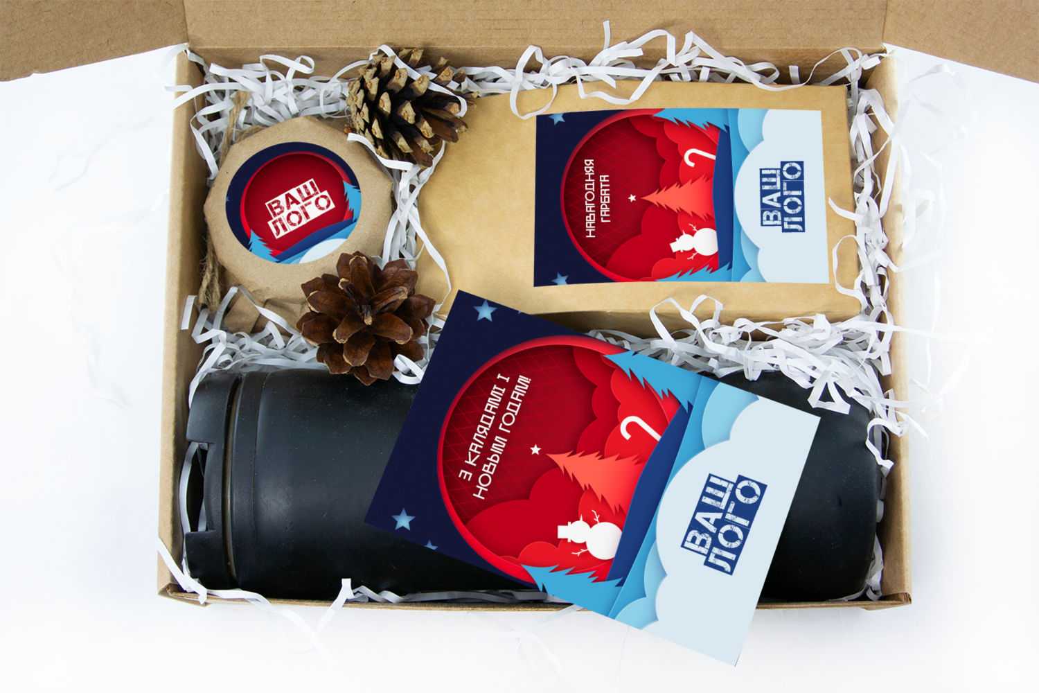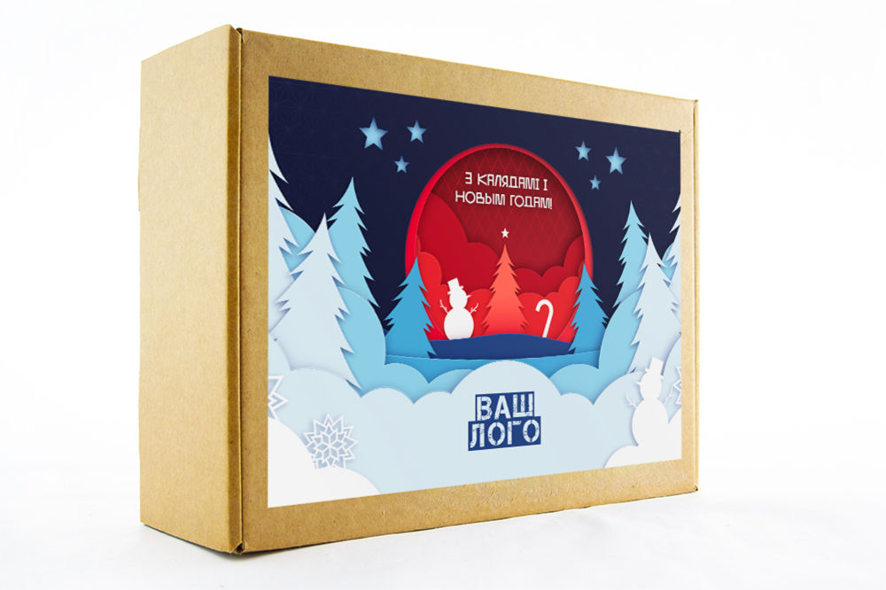 в крафт-коробке с наклейкой. Наклейка 6*9,5см с вашим логотипом